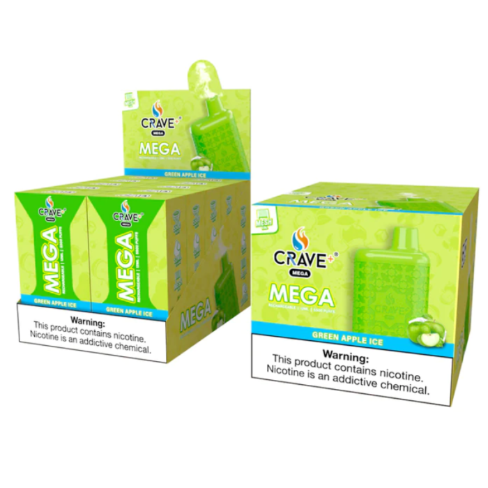 CRAVE MEGA DISPOSABLE 5500PUFF SOUR APPLE ICE-BOX OF 10