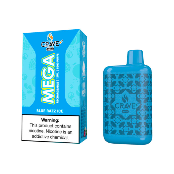 CRAVE MEGA DISPOSABLE 5500PUFF BLUE RAZZ ICE-BOX OF 10